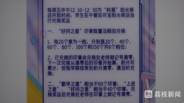 为了更科学和全面评价学生,本学期学校强化了学习的过程性评价,每月评选好问之星、勤学之星、进步之星,获此荣誉的学生可得到一定数量的印章,可以在学校"阳光超市"兑换文具、体育用品等奖品。