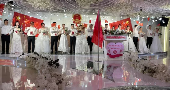 2021年5月20日,姜堰区婚姻登记服务中心为十对新人举办集体颁证仪式。(资料图)