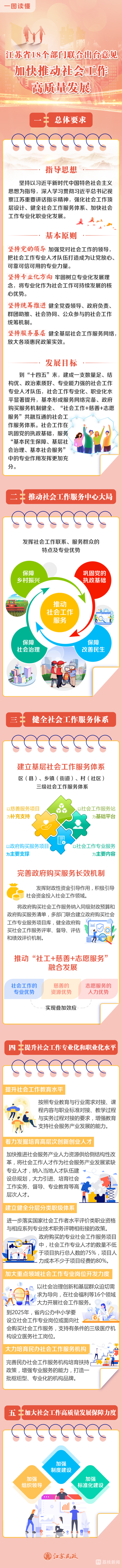 今天(1月5日),记者从江苏省社会工作高质量发展暨社会工作专业人才队伍建设“十四五”规划新闻发布会上获悉,为解决江苏社会工作发展中存在的“卡脖子”难题,强化社会工作顶层设计,江苏省民政厅、省委组织部、省委政法委员会、省高级人民法院、省人民检察院、省教育厅等18个部门联合印发《关于加快推进社会工作高质量发展的意见》。