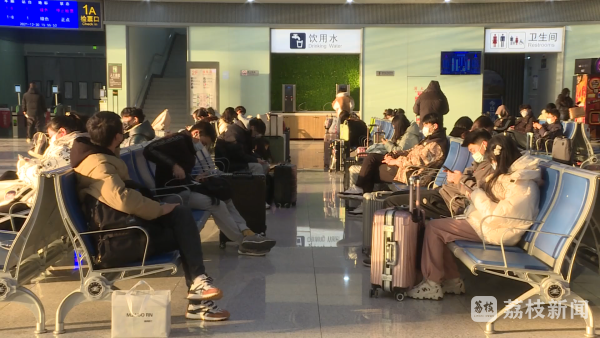 这两天,各大驻淮高校提前放假,记者在淮安东站候车大厅看到,许多大学生拎着大包小包的行李,正在有序排队等待着列车的到来。