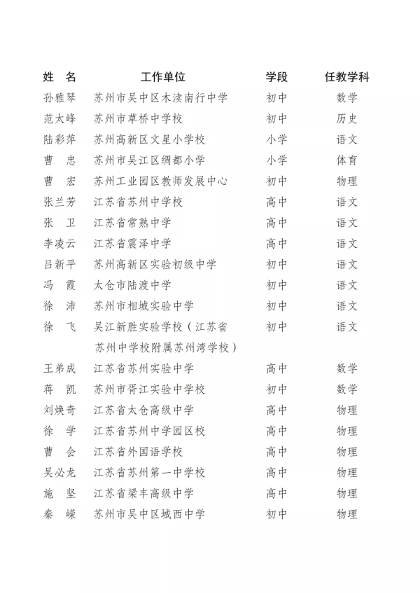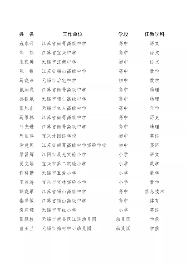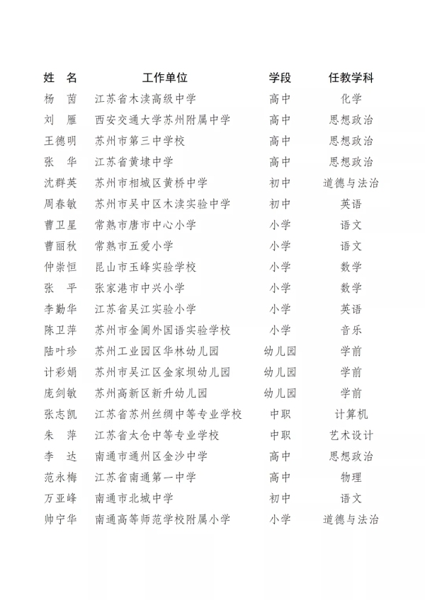 记者今天获悉,为表彰在教育教学中作出特殊贡献的教师,大力弘扬尊师重教的良好社会风尚,根据《省政府办公厅关于印发江苏省特级教师评选和管理办法的通知》(苏政办发〔2021〕30号),省政府决定授予朱焱等318名同志“江苏省特级教师”荣誉称号。同时号召全省广大教师要以他们为榜样,牢记为党育人、为国育才使命,立德修身、爱岗敬业,争做“四有”好教师,当好学生成长的引路人。并要求各地各有关部门要全面贯彻党中央、国务院关于新时代教师队伍建设的决策部署,认真落实省委、省政府各项要求,积极改善教师工作生活条件,努力提高教师地位和待遇,着力打造高素质、专业化、创新型新时代教师队伍,为高标准建设教育强省、办好人民满意的教育提供有力支撑。