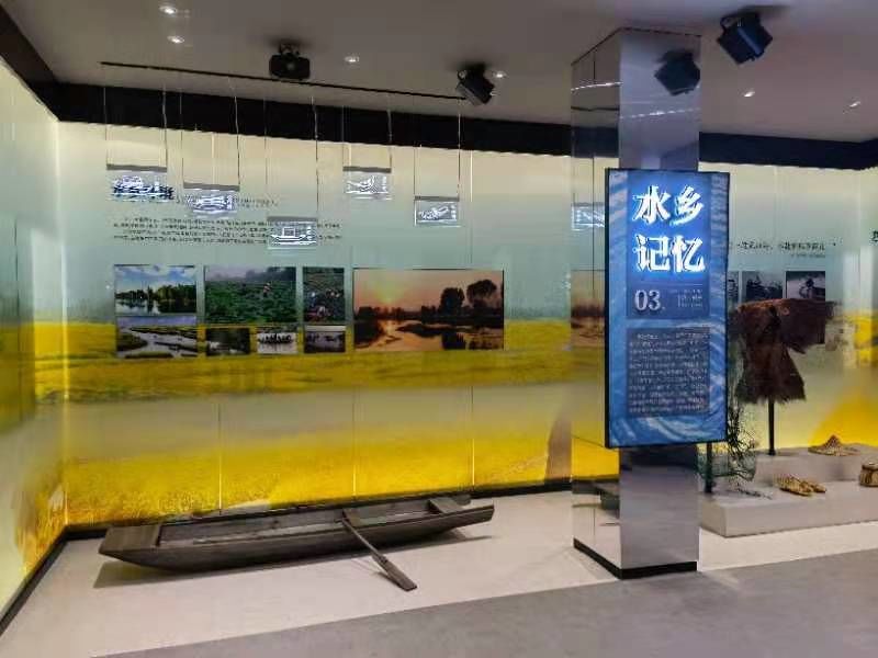 漫步馆内,馆以水之科普及兴化治水史与其功成为主。期见观者,蓄性于水,望养知水、爱水,惜水护水之神故也。水造化者,养兴化民,亦尝被重艰,以音、视、老照告之,展兴化上下,水旱所害。水之利处由一巨景画,宛转水于兴化城供水、航行、灌溉、发电、生态等之效。“深水鱼,浅水藕,滨河步飘杨柳,鹅鸭成群。”其地为慕光之华,不离水之滋养。纵览上下,增长以识,实获满盈,甚是大喜。