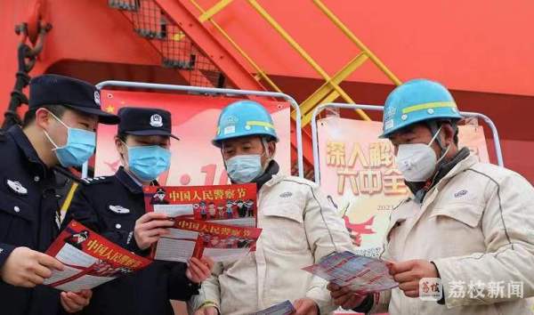 1月10日是第二个中国人民警察节。1月6日,扬州出入境边防检查站民警来到码头一线,开展中国人民警察节宣传活动。