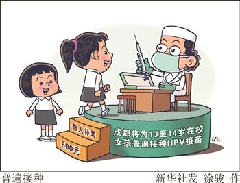 日前,四川省成都市双流区、金堂县等地已经全面启动为13至14岁在校女孩普遍接种HPV疫苗工作,积极预防女性宫颈癌。新华社发 徐骏 作