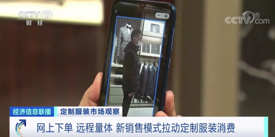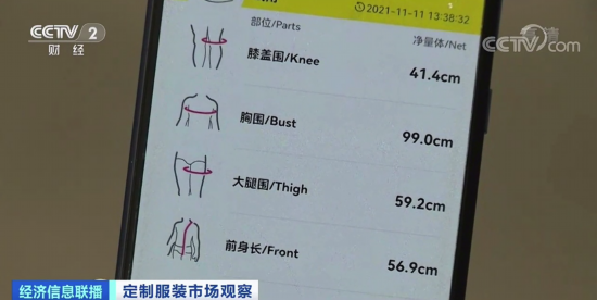 在大连一家定制服装企业,负责人告诉记者,他们主要经营定制皮衣和女装等品类。目前他们的定制服装销售并不局限于线下门店,有很大一部分都是来自于网络订单。消费者不仅可以在网上选择面料,参与款式设计,还可以实现远程量体,只需要按照要求拍摄照片,就可以智能地展示出领围、腰围等多个部位的尺寸数据。