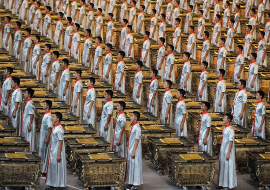 2008年8月8日,第29届夏季奥林匹克运动会在中国国家体育场隆重开幕。这是开幕式上的击缶表演。新华社记者刘大伟摄