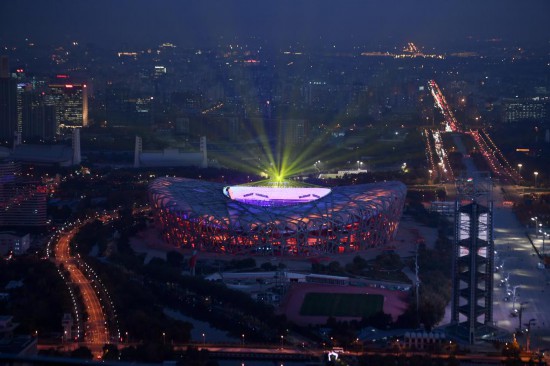 2021年10月28日,国家体育场夜景。这里将会作为北京冬奥会和冬残奥会开闭幕式场地。新华社记者张晨霖摄