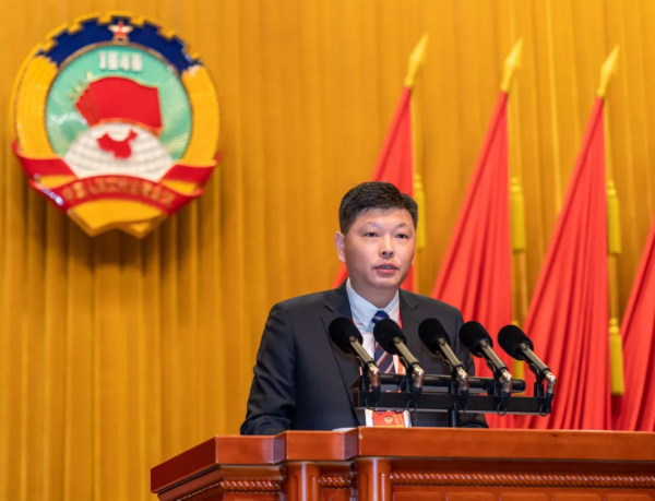 一届区政协副主席李波受政协无锡市梁溪区第一届委员会常务委员会委托向大会报告一届区政协提案工作。