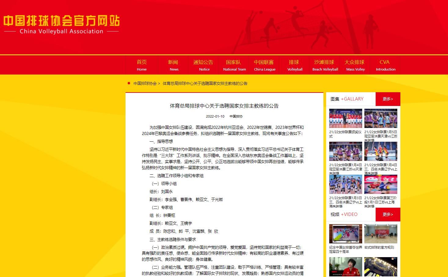 (一)发布选聘公告。国家女排主教练选聘公告在中国排球协会官网发布。