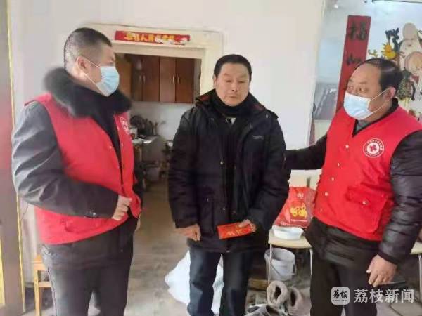 1月9日下午,射阳县红十字会爱心家园志愿服务队一行15人,分两路走访慰问特困家庭,给他们每户送去500元慰问金和米、油等生活必需品。