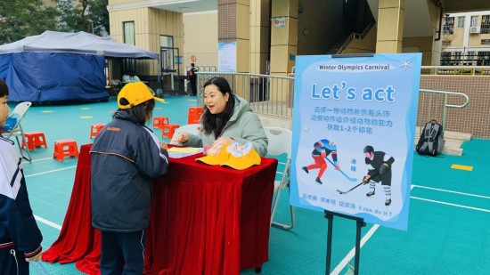 广州市海珠外国语实验中学附属小学为一年级学生举办“冰雪奥运英语嘉年华”。(受访者 供图)