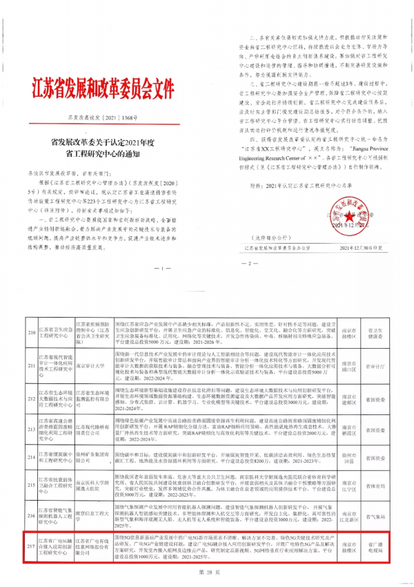 日前,江苏省发展和改革委员会发布了2021年度省工程研究中心的认定名单,由江苏有线作为依托单位申报的“江苏省广电5G融合接入应用创新工程研究中心”(简称“中心”)成功入选。“中心”是广电行业及省内首个专注广电5G应用领域的工程研究中心,是江苏有线深入落实省委省政府创新驱动发展战略,服务产业强链计划,推进产业智能化改造、数字化转型的重要载体。
