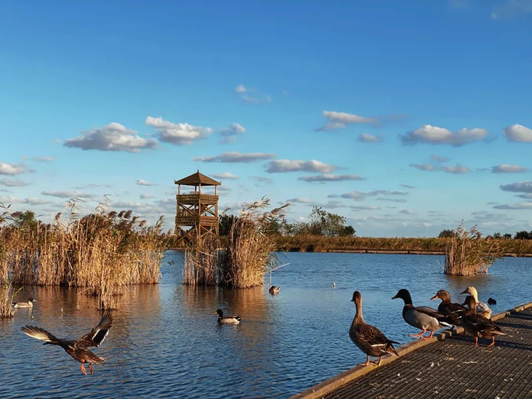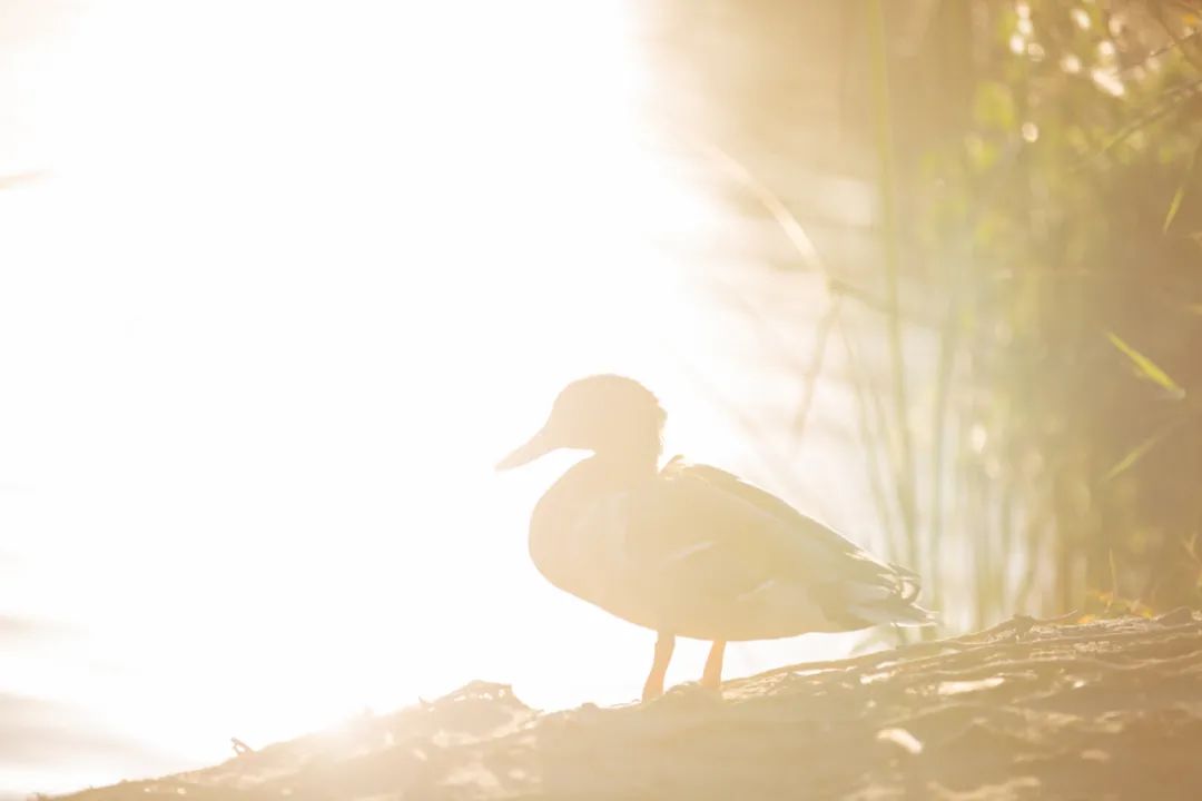野鸭子在湖边戏水,湿润的空气里带着凉凉的秋意。