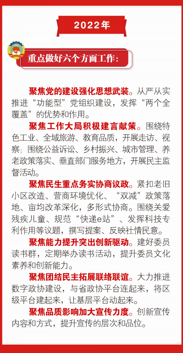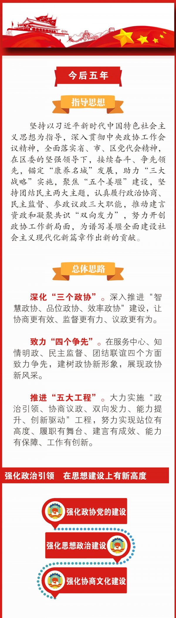 方针希望,全区政协组织和广大政协委员以习近平新时代中国特色社会主义思想为指导,全面贯彻党的十九届六中全会精神,按照省、市、区委决策部署,牢牢把握团结和民主两大主题,认真履行政治协商、民主监督、参政议政职能,扛起使命担当、全力争先领先,在姜堰现代化建设新征程中作出更大的贡献。