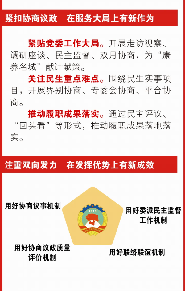 要把制度规范立起来。把制度建设作为规范委员行为、推动创新发展的基础性工作,建立健全委员履职档案、新任委员履职承诺等制度,完善委员履职评价及激励机制,持续开展委员“星级评比”活动,激发广大委员参政议政热情,更好地肩负起政治责任、履职责任和社会责任。