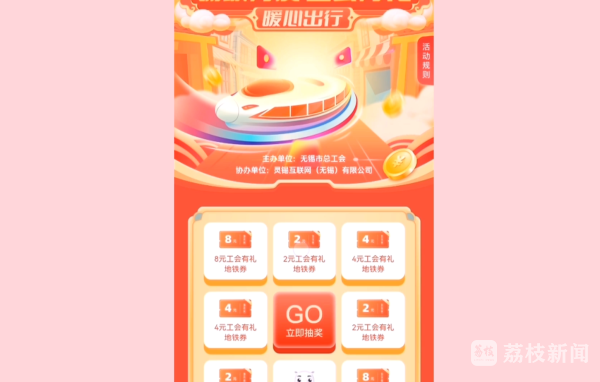不仅如此,无锡市总工会也正式启动了“锡城有爱 工会有礼”活动,为留在无锡过节的工会会员发送系列免费福利,已实名认证的工会会员,都可上线抽奖一次,首波福利共10000张地铁券,在线免费送。