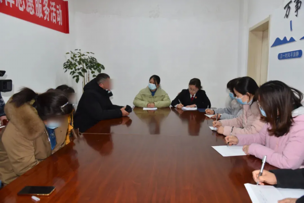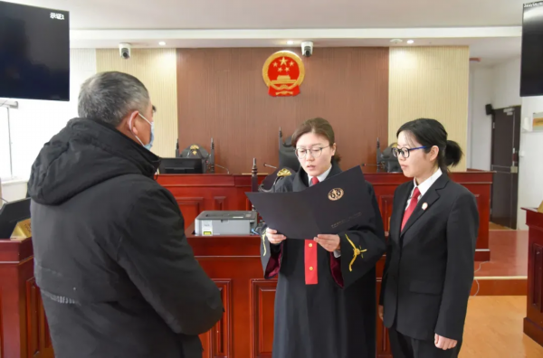 1月1日,盱眙法院科技法庭内,院党组成员、审判委员会专职委员周婷向实施犯罪行为的未成年人父亲徐某宣读了“责令接受家庭教育指导令”。
