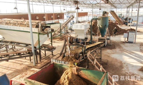 有着“中国葡萄之乡”之称的句容茅山镇葡萄种植面积约2万亩,每年产生的葡萄废枝和其它废弃物有一万多吨。很多农户像殷九兵一样,没办法有效处理葡萄废枝,或者处理技术不到位,利用率低。而堆肥中心的成立,极大地方便了周围的农户,通过粗粉、细粉、添加营养液和菌液、发酵、包装一系列机械化操作过程,绿色有机的肥料就产生了。堆肥中心负责人赵显红告诉记者:“经过我们处理以后,首先第一个这个葡萄枝的杂菌没有了,比如白粉病的菌、灰霉病、曲霉这些都没有了,因为它发酵过程中70℃到80℃的高温,然后我们的有机肥没有任何杂质,施到田地里能够起到疏松土壤,果蔬增加甜度这些功效。”