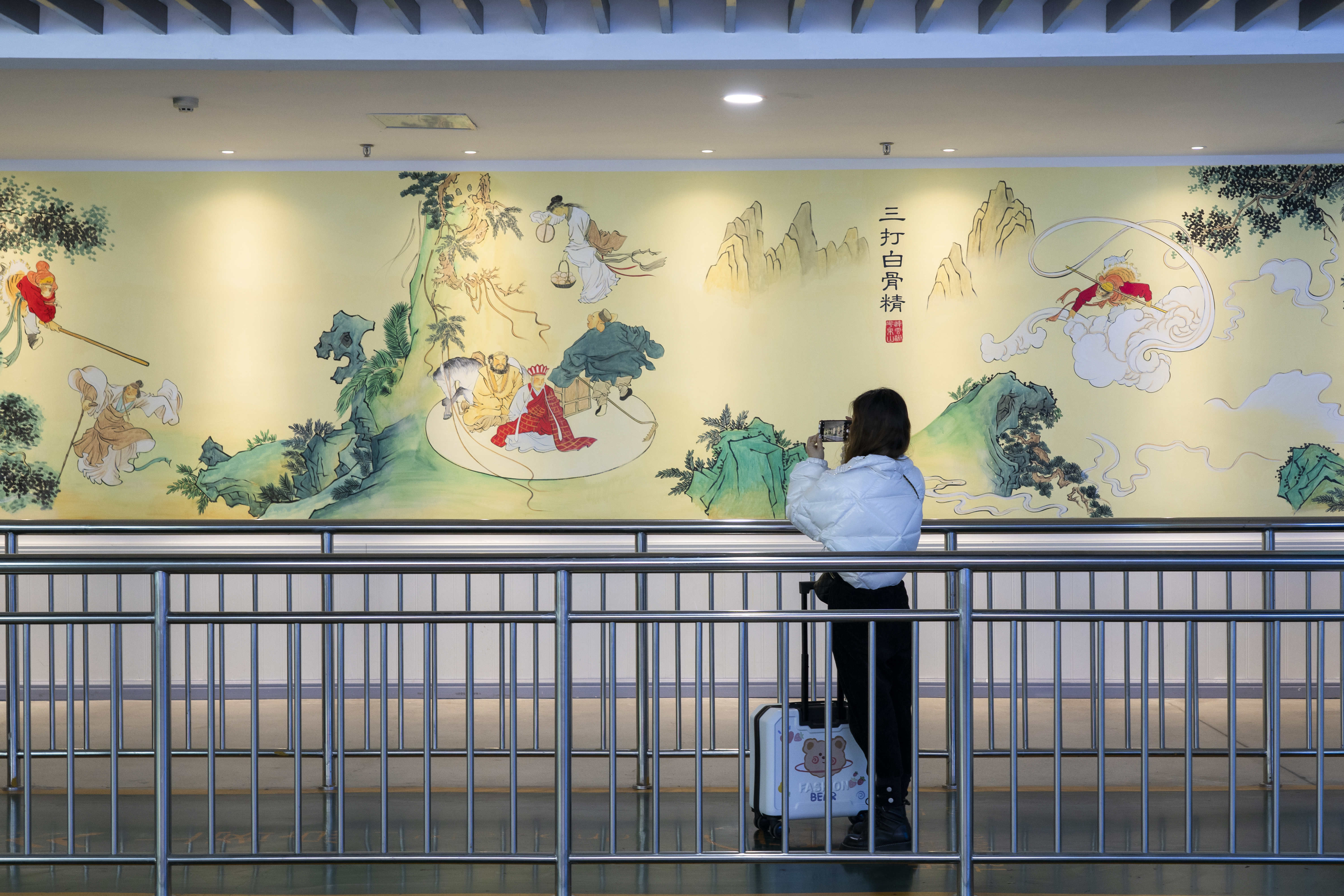 旅客拍照记录壁画中“三打白骨精”部分