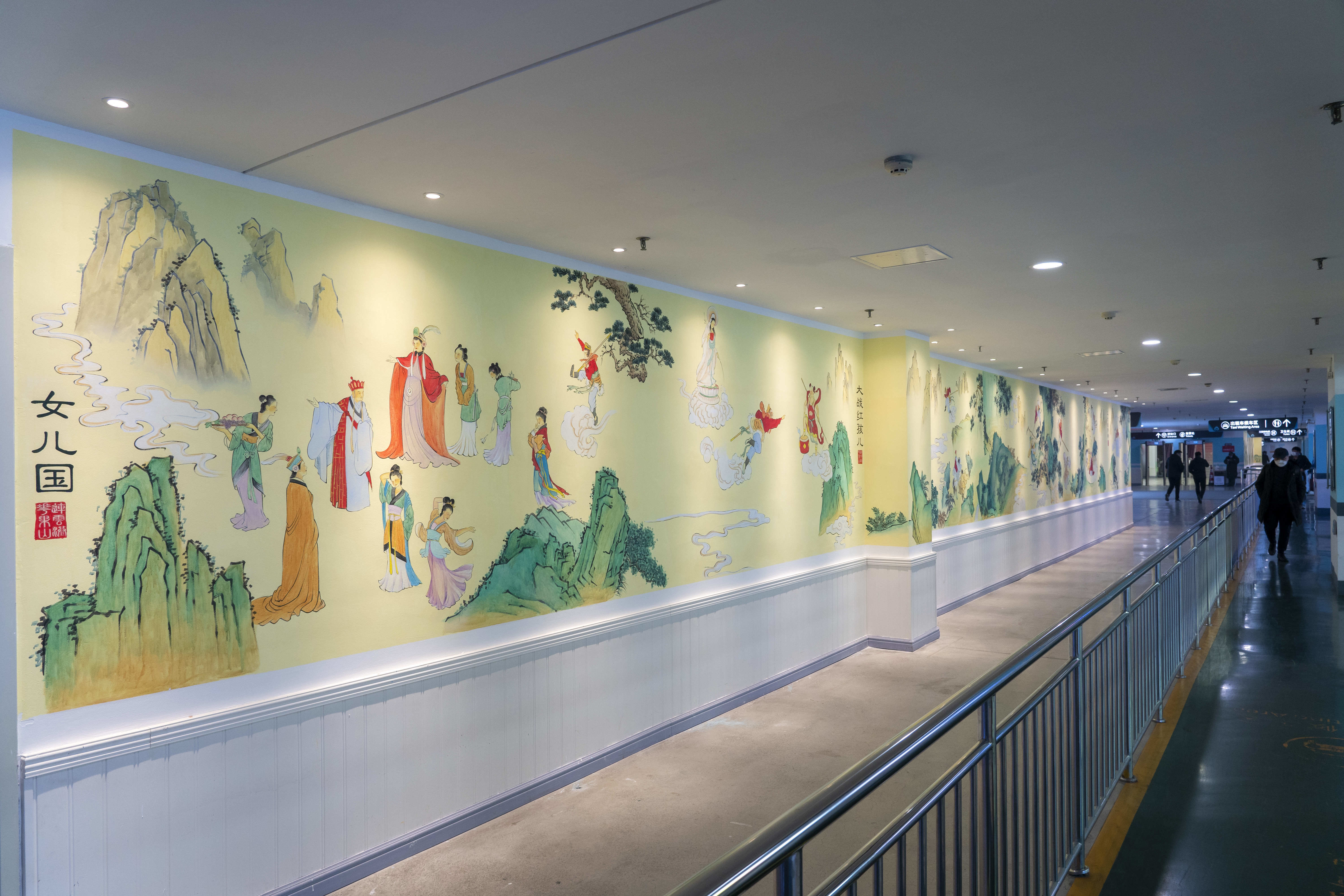 用经典名著元素让地下停车场“动”起来,让综合客运枢纽“靓”起来,让出行旅客“忆”起来,让城市底蕴“活”起来,是连云港市交通控股集团权属交通集团本次策划制作西游壁画的初衷。连云港市交通集团利用元旦假期前后时间,在综合客运枢纽制作完成了西游主题彩色壁画“矩阵”。该系列壁画位于地下停车场入口附近的6面墙体上,采用中国传统壁画彩色写实、工笔描绘的形式,使用丙烯颜料手工绘画,以“花果山美景”“三打白骨精”“流沙河收沙僧”“取经之路”“五圣成真”等主题进行创作,展现名著《西游记》中的经典人物形象和故事情节。