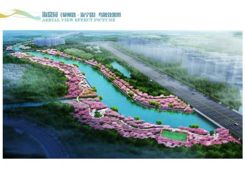 海州玉带生态河廊道项目是今年连云港市的重点民生工程,该项目西起新海路,东至海宁路,长度7.8公里,包含玉带河南北两岸各30米范围内建设绿地48公顷。项目以“玉带瀛洲”为设计主题,以人文背景、城市肌理和生态持续为设计基础,引入花林花海、运动健身、亲水地标和智慧公园四大设计理念,将打造一条流动的花海景观长廊、一处智慧的运动健身空间、一个综合的河滨生态公园。全线分为三个主题花卉园,新海路至振海路段为梅园,振海路至郁洲路段为樱花园,郁洲路至海宁路段为海棠园。同时建设17公里绿道系统,沿线布置33处球类健身场地。