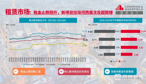 南京河西写字楼租金首超鼓楼、新街口写字楼空置率稳中承压、首店经济持续发力······1月12日,房地产服务和咨询顾问公司戴德梁行就2021年南京写字楼及零售商业市场等话题进行回顾和多维度的解读,并对2022年市场发展趋势进行了展望和预测。