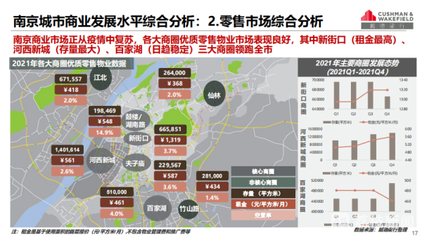记者了解到,2021年南京新开10家优质零售商业项目,同比上涨40.8%,新增商业体量约94.2万平方米。各大商圈优质零售物业市场表现平稳,新街口、河西、百家湖三大商圈领跑全市。
