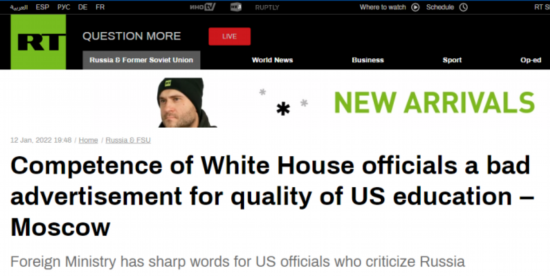 【环球网报道 记者 林泽宇】据今日俄罗斯电视台网站报道,在美国副国务卿维多利亚·纽兰发表嘲讽俄罗斯的评论后,俄外交部发言人扎哈罗娃12日回应称:“白宫官员的荒谬、错误百出的言论充分证明了美国教育的质量。”