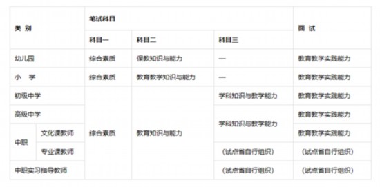 中小学教师资格考试笔试及面试科目安排