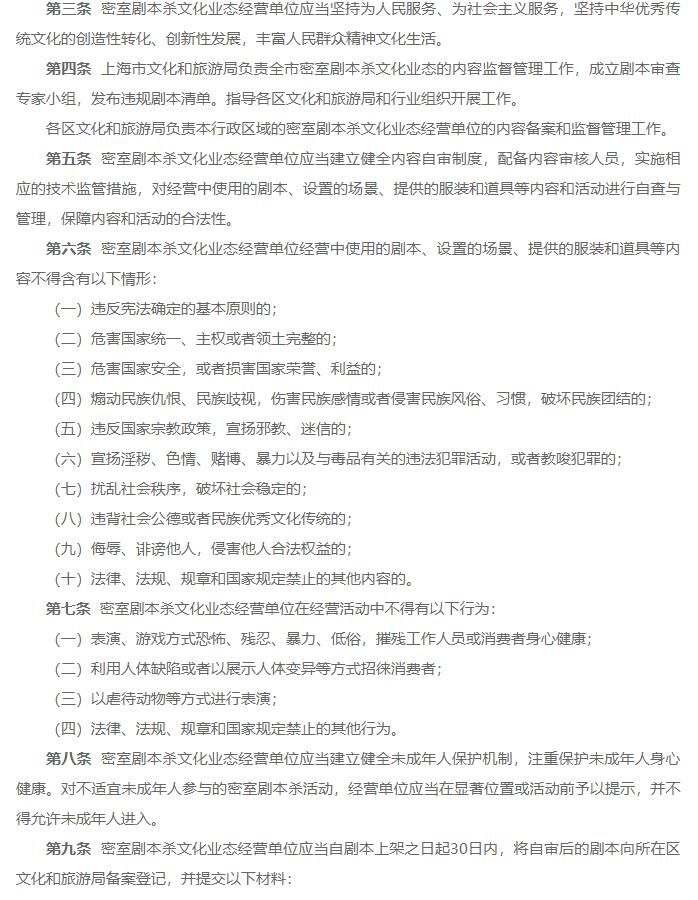 上海市密室剧本杀内容管理暂行规定