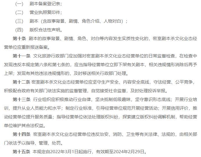 第十条 剧本的故事背景、剧情、角色、对白等内容发生实质性变化的,密室剧本杀文化业态经营单位应重新报送备案。
