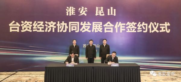 在双方领导见证下,市委常委、常务副市长顾坤与昆山市委常委、常务副市长沈一平签署《2022年度台资经济协同发展合作协议》。根据协议,双方将深入贯彻落实省委省政府推进昆山试验区和淮安台资集聚示范区协同发展的工作部署,按照“市场主导、政府引导、优势互补、合作共赢”总体要求,在深化台资产业合作、加快淮昆台资合作产业园建设、强化昆山试验区政策经验复制推广等方面展开务实高效合作。