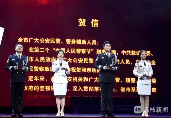 我苏网讯 1月12日晚,盐城市聚龙湖畔的市文化艺术中心大剧院里,灯光璀璨,掌声阵阵,这里是2021年盐城公安工作报告会的现场。报告会以“公安心向党 护航新征程”为主题,通过视频短片、情景讲述、诗朗诵、微情景剧、舞台直播、水鼓说唱等形式,生动呈现了盐城全市公安机关持续深化“一体、两翼、三大支撑、四轮驱动”工作布局,战疫情、保安全、促发展、惠民生,奋力交上盐城百姓引以为荣的平安答卷。
