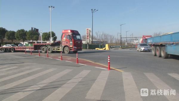 为了减少和避免此类事故发生,南京江北新区警方学习外地较为成熟的经验,在江北新区设置了三个大型货车右转必停试点,其中一个试点是在南京江北新区永锦路的路口。这附近因为有物流公司,大货车相对比较多。记者在现场看到,这里有大货车的停车观察区域,旁边红色是大货车的右转盲区。这个盲区也是交管部门经过实地测算过的。大货车不要靠近这个盲区,行人也不要进入这个盲区。
