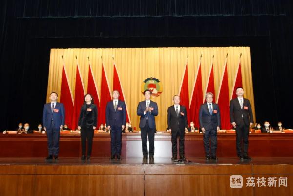 在全场热烈的掌声中,政协江阴市第十六届委员会主席、副主席、秘书长向全体政协委员和列席人员致意。