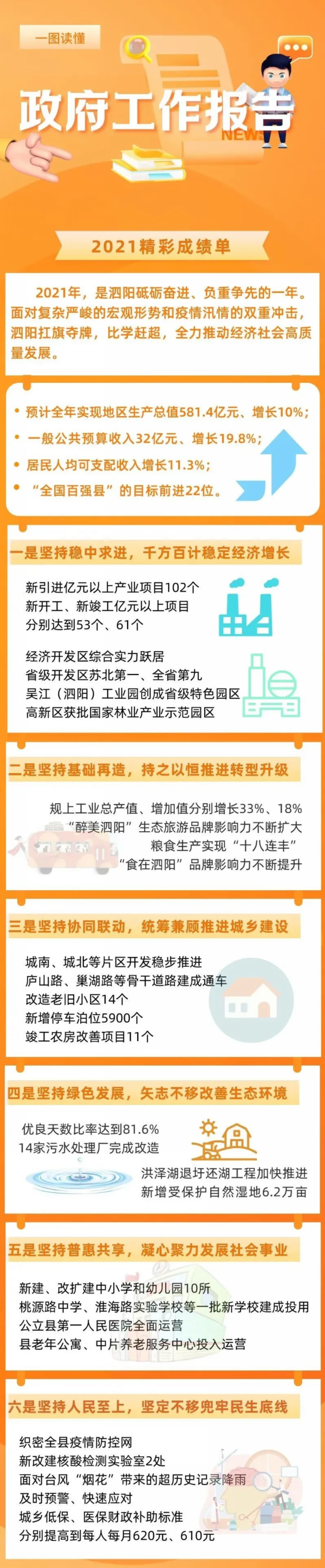 1月12日上午泗阳县第十八届人民代表大会第一次会议隆重开幕。县委副书记、代县长范德珩作政府工作报告,报告内都有哪些干货和亮点?今天,小编带你一图读懂↓