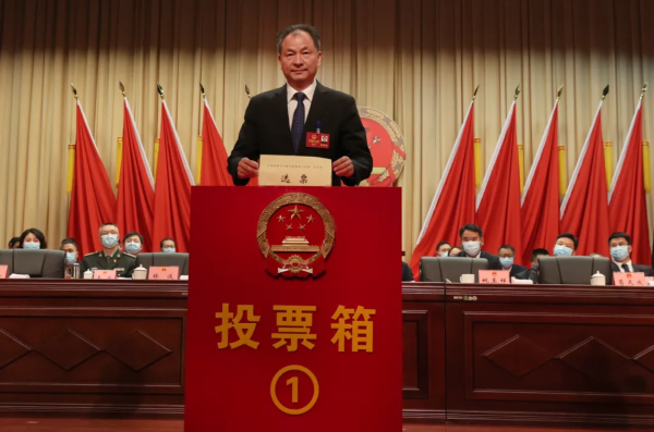 在林波的领誓下,新当选人员庄严向宪法宣誓:忠于中华人民共和国宪法,维护宪法权威,履行法定职责,忠于祖国、忠于人民,恪尽职守、廉洁奉公,接受人民监督,为建设富强、民主、文明、和谐的社会主义国家努力奋斗。