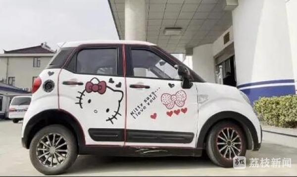 在周边一户村民家的监控中发现了一辆可能是嫌疑人驾驶的车辆。通过进一步调查发现,这辆车很有特色,车身侧面贴着Hello Kitty卡通图案,特征十分明显。