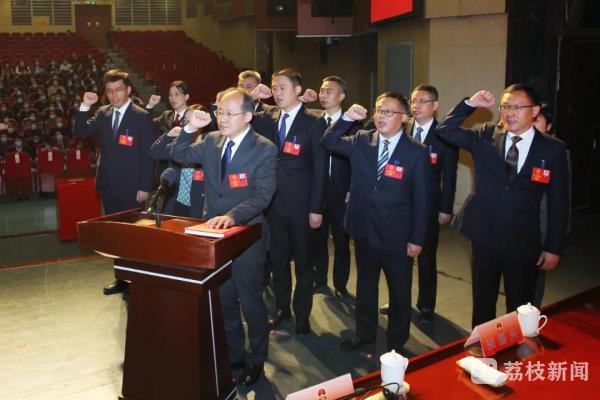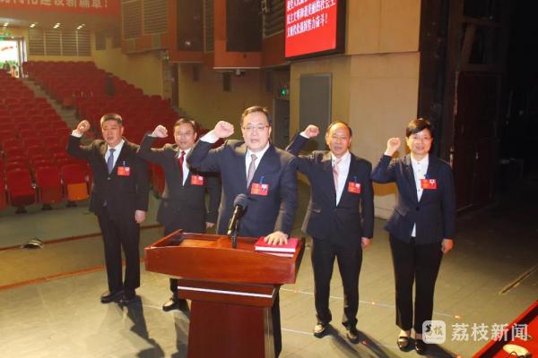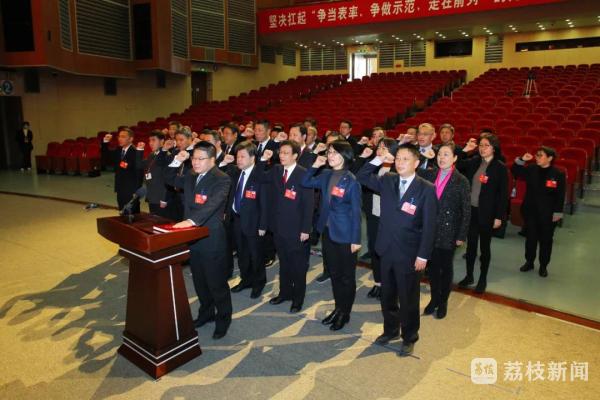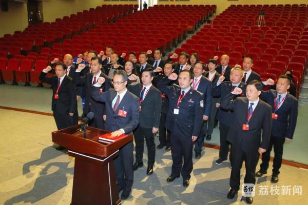 新当选的江阴市十八届人大常委会主任、副主任,市人民政府市长、副市长,市监察委员会主任,市人民法院院长进行了宪法宣誓。