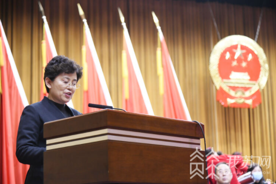 新当选的新一届区人大常委会主任朱连芹、区政府区长韩可分别表态发言。