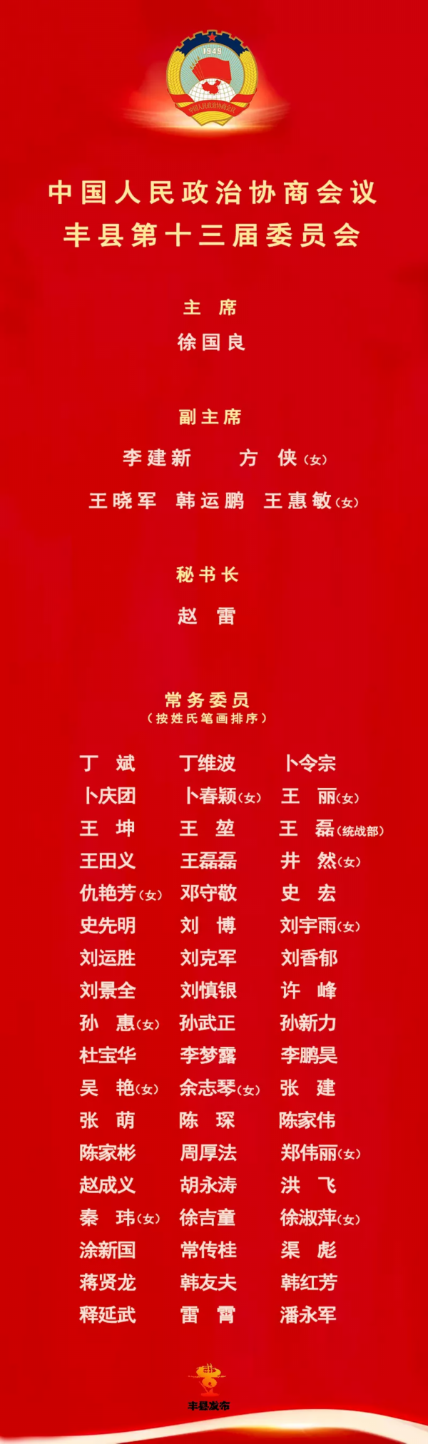 1月13日下午,政协丰县第十三届委员会第一次会议圆满完成了各项议程,胜利闭幕。