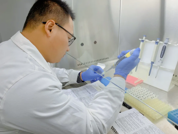 2021年5月9日,刘凯在泰兴市畜牧兽医中心检测非洲猪瘟。