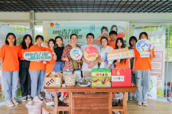 2020年8月,宗瑛(右5)带领学生实践团队开展助农丰收节直播活动。