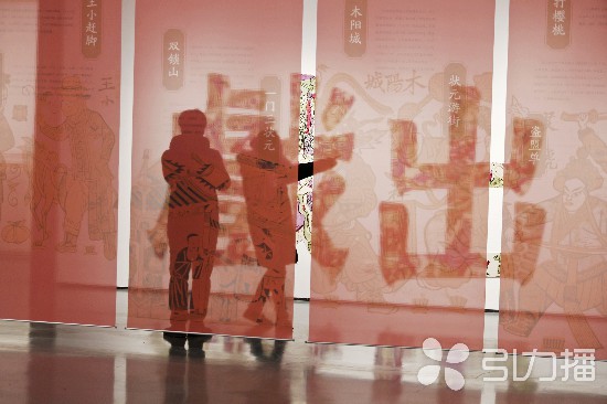 值得一提的是,此次展览中展出了两幅国内孤本《窦燕山》《校场比武》墨线版,原版流失韩国,2018年在韩国古版画博物馆用韩纸印制后带回,这也是回归后的首次公共展出。两幅墨线版年画中的“窦燕山教子成名”和“刀劈王伦”的场景也被放大装饰在美术馆墙面上,红色的墨线年画也为展馆增添了一分年味儿。据介绍,展览中还特别展出清代康熙、雍正、乾隆年间五幅姑苏版原作精品。