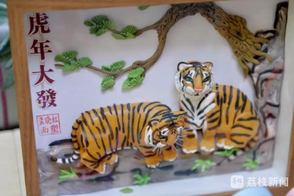 据了解,今年老虎形象成文创产品主打元素,从春联到台历,从红包到笔记本,各类产品的包装设计上,随处可见老虎身影。“老虎在现实世界中是威风凛凛的百兽之王,但体现在毛绒玩具、文具、盲盒等文创产品上,就变得憨态可掬起来,正是这种强烈的反差感让人忍不住想购买。”今年21岁的大学生小张说。在西西弗书店搭建的“福虎啸新年”专区,市民刘先生正在为家中5岁的儿子选购一本虎年立体绘本,翻开书页,只见一只神情威武的立体老虎脚踏祥云,立于纸上,一旁还配有虎文化历史手绘,充满童趣。
