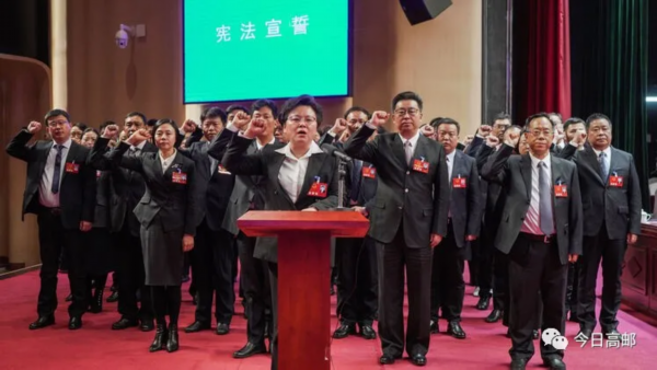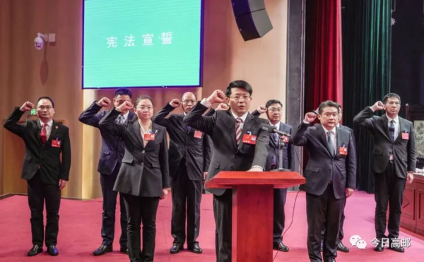 依据法律规定,新当选人员与代表见面,并进行宪法宣誓,全体代表监誓。