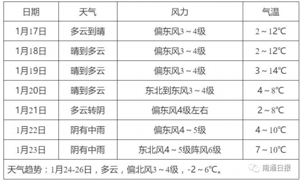 根据最新气象资料分析,22—23日南通有一次降雨过程,其余时段以云系变化为主,受冷空气影响,19—20日、23—25日有两次降温过程,具体预报如下: