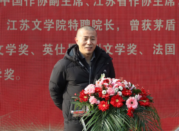 近年来,在市、区两级党委政府的关心支持下,在广大作家的共同努力下,淮安区的文学取得了显著成绩,并在今天举行淮安区作协创研基地揭牌仪式,作为从这个大地上走出来的作家,对此表示由衷的祝贺。希望广大作家能够在运河边静心创作,祝愿淮安的文学发展越来越好。