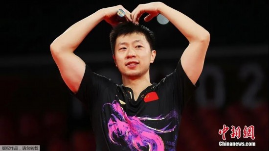 东京奥运会乒乓球男单决赛,马龙以4:2战胜樊振东,成功卫冕冠军,赛后马龙比心。