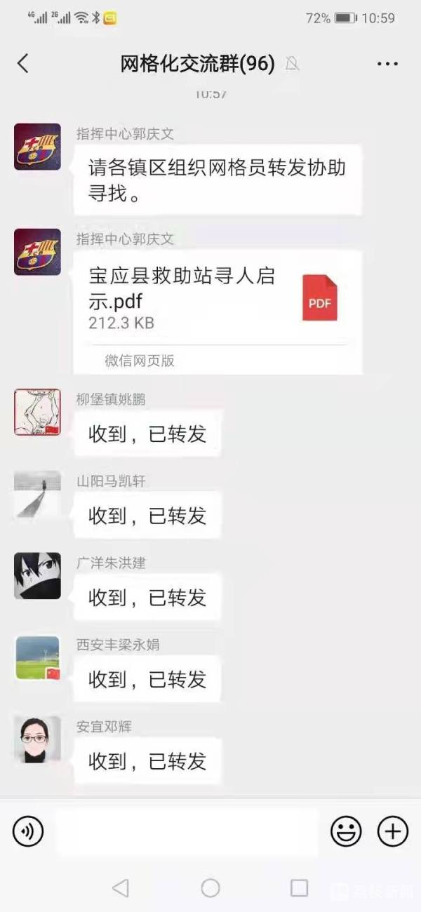 小小网格群,关键时刻帮助流浪精神疾病患者找到回家路。1月3日,宝应县民政局救助站工作人员发现一位男性流浪人员一直在城区繁华地段晃悠,直到夜里仍未回家,困了就在路边商店门口睡觉。救助站工作人员见老人行为反常,主动接近老人,并试图与其交谈询问家庭住址、家人联系方式等情况,但老大爷一一应答不上来,并进行暴力反抗。从老人的口音中,救助站工作人员初步判断其是本县人,于是将“寻人启事”发到了“宝应县网格化交流群”。全县各镇区网格员立即在各自镇区网格员群内转发寻人公告,网格员随即展开了一场帮走失老人寻家的接力赛。